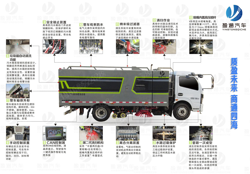 天錦16方洗掃車,國六16方洗掃車,高壓清洗掃路車,洗掃車廠家報價,該車主要用于清掃、清洗路面垃圾污物;主要裝置為箱體及清掃裝置;隨底盤選裝駕駛室;整車長度/軸距對應關系(mm):8700/5000,9000/5300;側防護由專用裝置代替,后防護材料為:Q235碳鋼,連接方式均為:螺栓連接,后部防護截面尺寸(mm):230×60,后部防護離地高度(mm):400;ABS型號/生產廠家:3631010-C2000/東科克諾爾商用車制動系統(十堰)有限公司,ABS 8/東科克諾爾商用車制動系統(十堰)有限公司, 4460046450/威伯科汽車控制系統(中國)有限公司,J ABS/焦作博瑞克控制技術有限公司。選裝外觀樣式. |